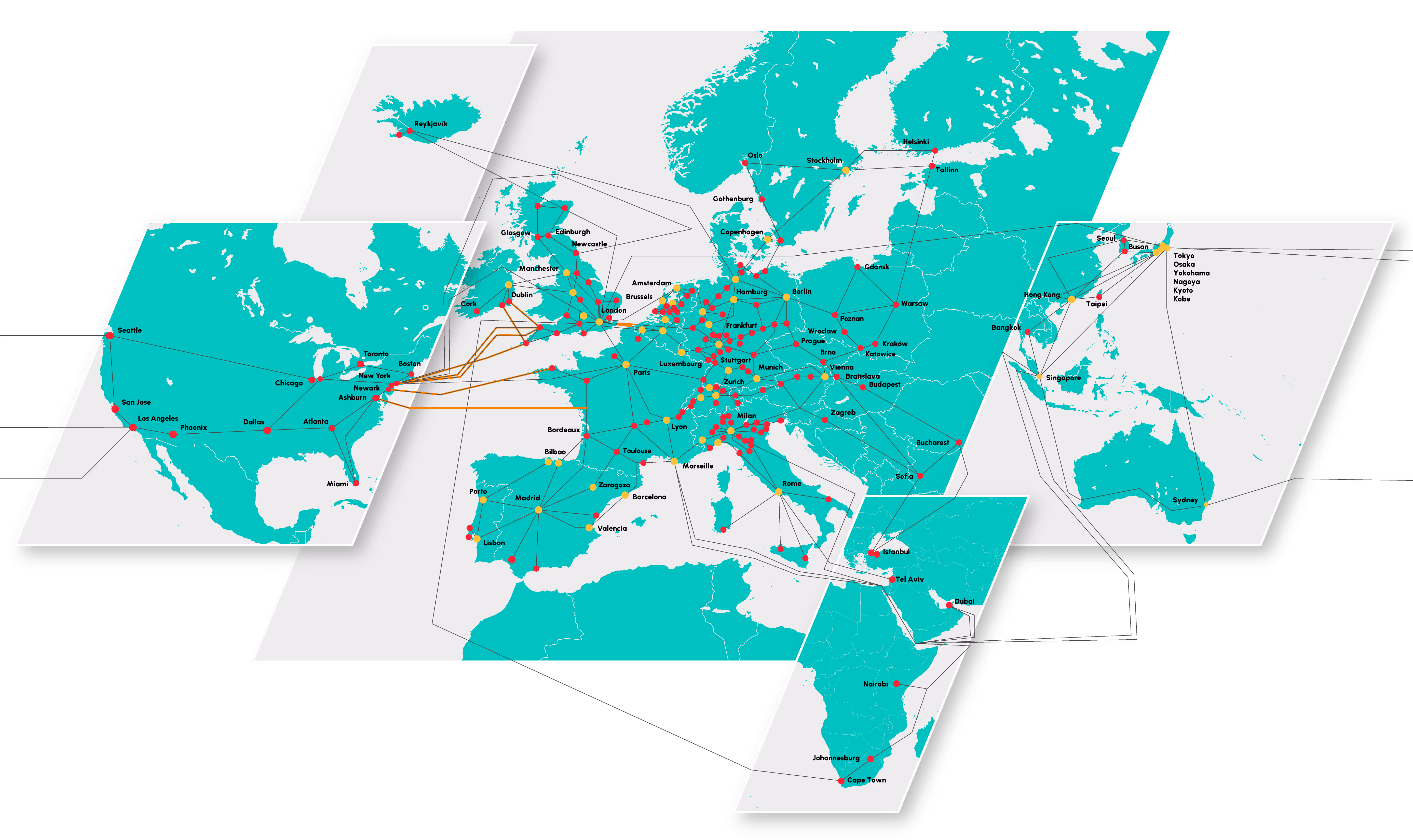Our network powers the world's leading businesses, connecting people, places and technology across Europe, Asia and the US.