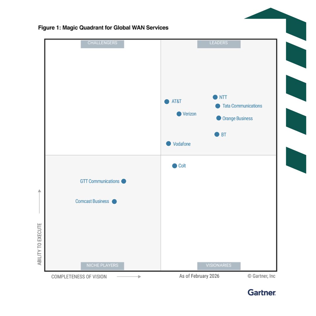 Colt has been positioned as a Visionary in the Gartner® Magic Quadrant™ for Global WAN Services, recognising us this time based on our completeness of vision.​