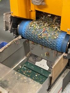 First, the equipment parts undergo an enhanced recycling process to identify any components made from precious and rare earth metals suitable for recovery. An in-depth analysis takes place on sample printed circuit boards (PCBs). The PCBs are finely shredded, non-metallic elements are then removed, and the remaining powder is analysed for content.
