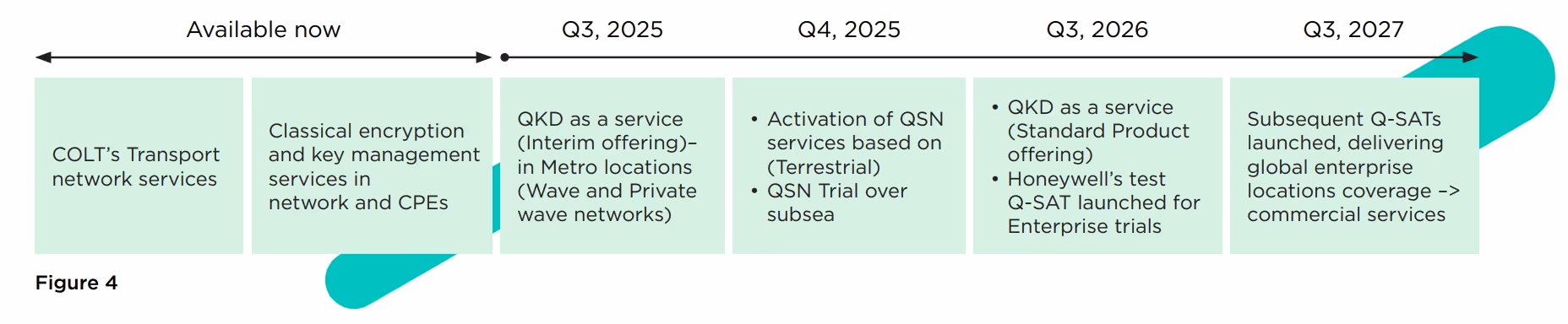The QKD as a service for Metro locations will be available in Q3, 2025. • The terrestrial QSN solution with symmetrical key distribution will be available in Q4, 2025 which can get enterprises started with a large number of use cases and deployment scenarios. Enterprises can start with network based QSN, all the way to Enterprise CPEs. • The long distance QKD via satellite is planning to be tested in 2026, and should be globally available for commercial services at the end of 2027.