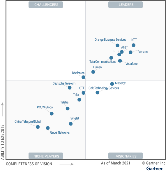 Gartner, Magic Quadrant for Network Services, Global, Neil Rickard, Bjarne Munch, Danellie Young, “2 March, 2021”